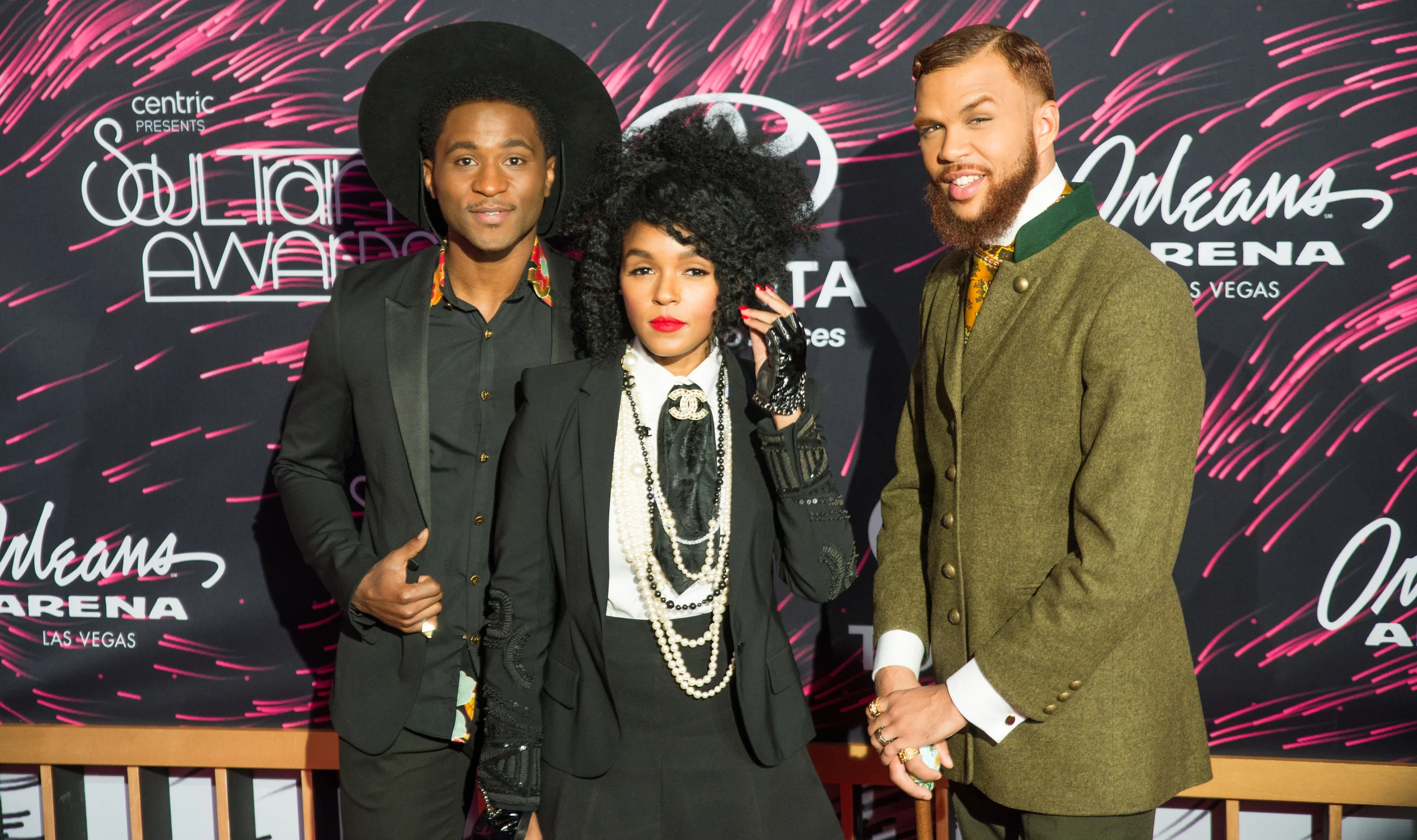 Roman GianArthur Janelle Monae and Jidenna pose for a photo on the red carpet at the Soul Train Awards